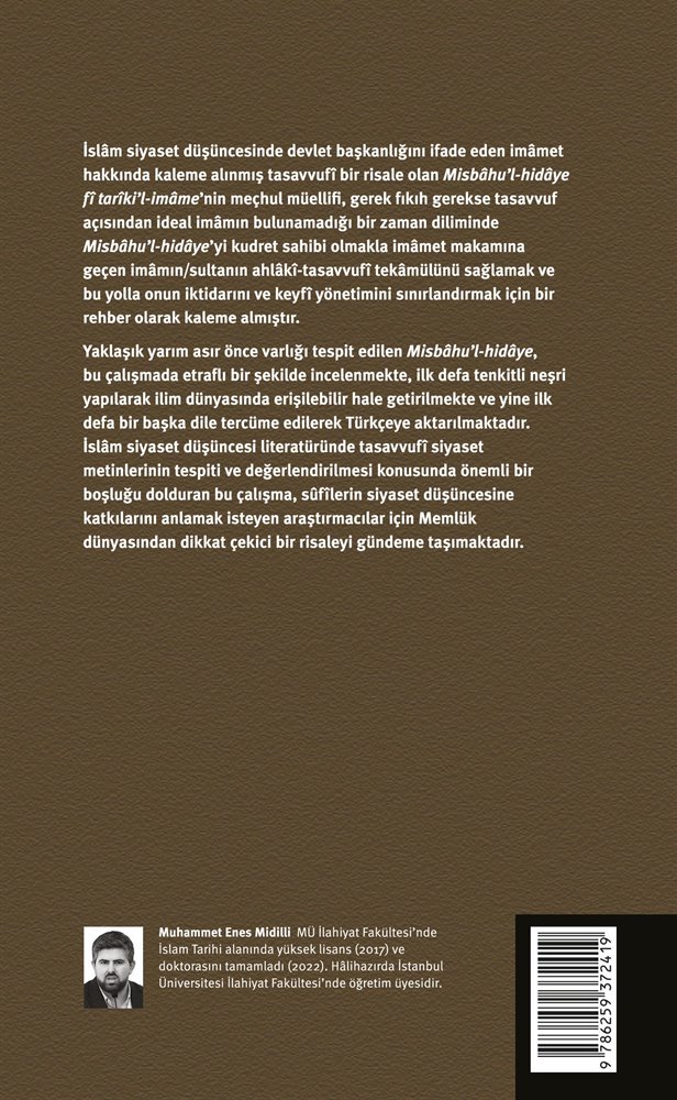 Yaklaşık yarım asır önce varlığı tespit edilen Misbâhu’l-hidâye, bu çalışmada etraflı bir şekilde incelenmekte, ilk defa tenkitli neşri yapılarak ilim dünyasında erişilebilir hale getirilmekte ve yine ilk defa bir başka dile tercüme edilerek Türkçeye aktarılmaktadır. İslâm siyaset düşüncesi literatüründe tasavvufî siyaset metinlerinin tespiti ve değerlendirilmesi konusunda önemli bir boşluğu dolduran bu çalışma, sûfîlerin siyaset düşüncesine katkılarını anlamak isteyen araştırmacılar için Memlük dünyasından dikkat çekici bir risaleyi gündeme taşımaktadır.